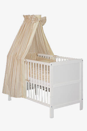 Mit dem niedlichen Design "Applikation Gute Nacht" verwandeln Sie dieses Babybett zum kuscheligen Schalfplatz.