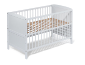 Dank der Möglichkeit zum Umbau zum Juniorbett ist das 120x60 cm große Babybett besonders lange nutzbar- hierbei werden die Kopfelemente entsprechend geteilt (diese bestehen aus 2 einzelnen Elementen). Außerdem kann es auch als Kindersofa genutzt werden- hierzu wird einfach eine Gitterseite abmontiert.